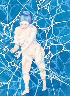 Watercolor is co-creative. No matter an artist’s years of mastery, the artist still works in concert with and at the behest of the water, making perfection and replication an inherent impossibility. The relationship is power-with instead of power-over. As Western society grapples with increased climate catastrophe in dissociative and hyper-individualistic ways, the field of ecology offers scientific and philosophical power-with solutions and an essential perspective shift towards interdependence and imperfect progress. Art bridges the gap between science and embodied awareness. I aim to show how humanity is a co-creative and essential member of the democracy of species, with the hope that a plural identity shared with our ecologies will embolden us to greater action in preserving ecosystems, indigenous knowledge, systems of mutuality, and sheer pleasure in the sensuality of existing. I meld multi-narrative elements from mythology, ethnobotany, mycology, theology, and psychedelia into vibrant, detailed scenes that celebrate the vitality of decay.