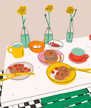 Her depiction of everyday foods show off the simplistic, yet enjoyable way of living life. Roberts’ use of greens and reds make the meals stand out in comparison to our perception of the dull vegetables we eat in real life.